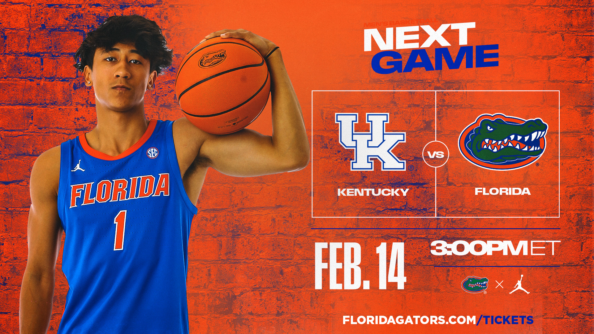 Watch Florida Gators men’s basketball face the Kentucky Wildcats in an SEC matchup at the O’Dome. Tipoff is set for 3 p.m. Fans seated in the lower bowl receive an orange shirt. Wear orange and stay after the game for postgame layups on the court.